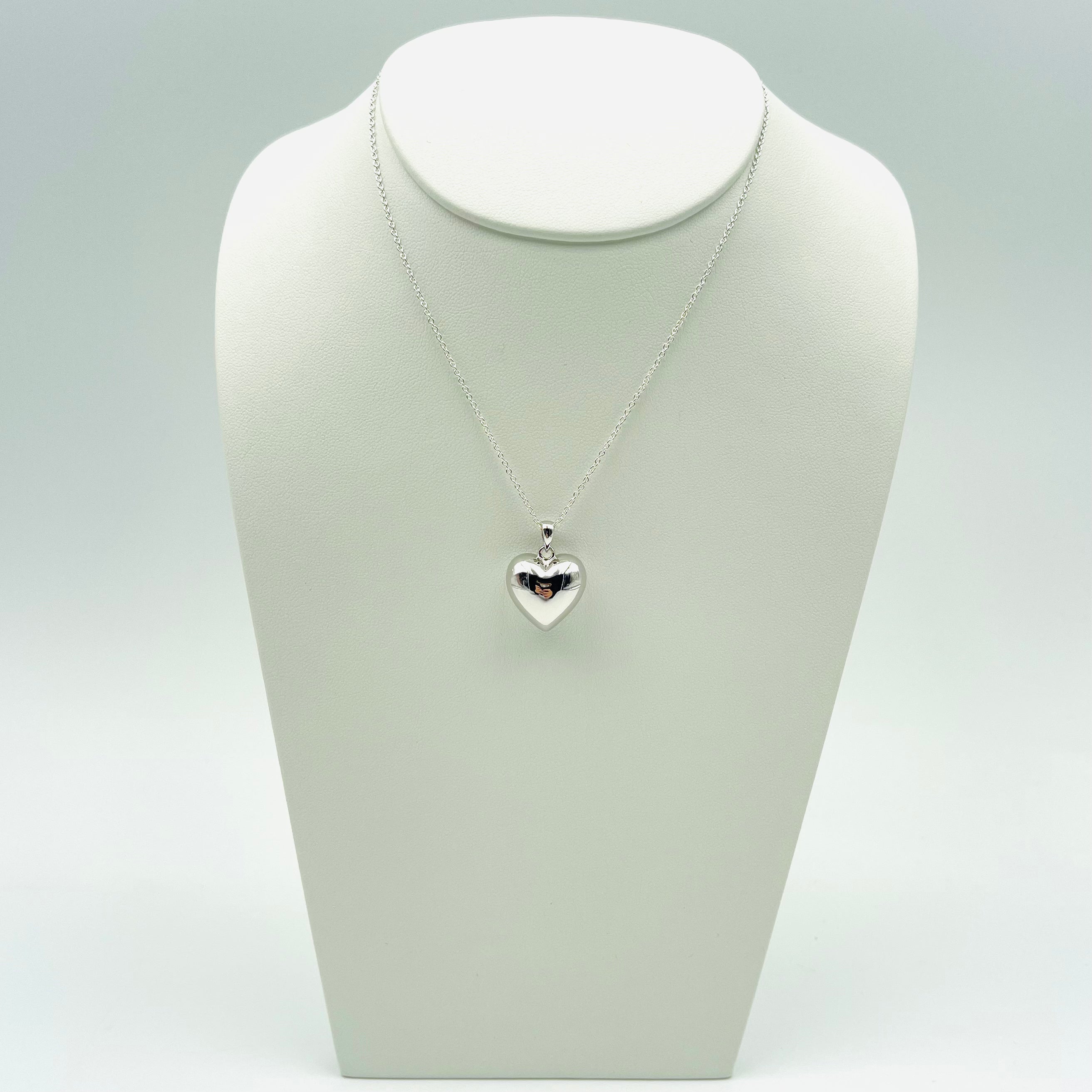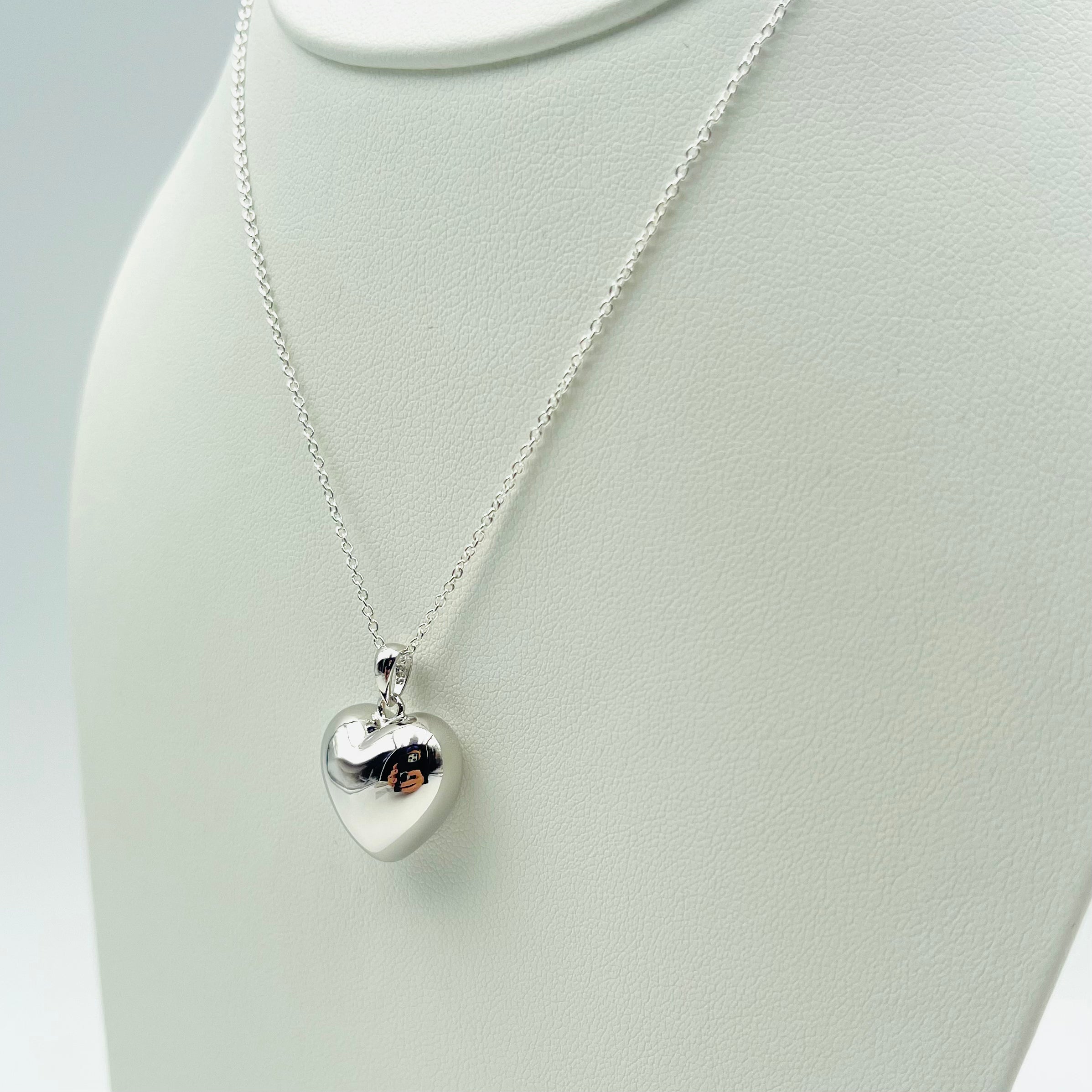 Catenina in argento colore bianco con ciondolo a forma di cuore bombato.