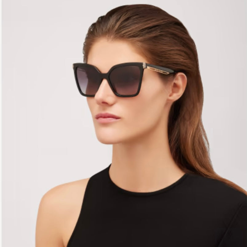 Occhiali da sole B.zero1 Downtown con montatura cat-eye oversize in acetato di colore nero e lenti grigie.