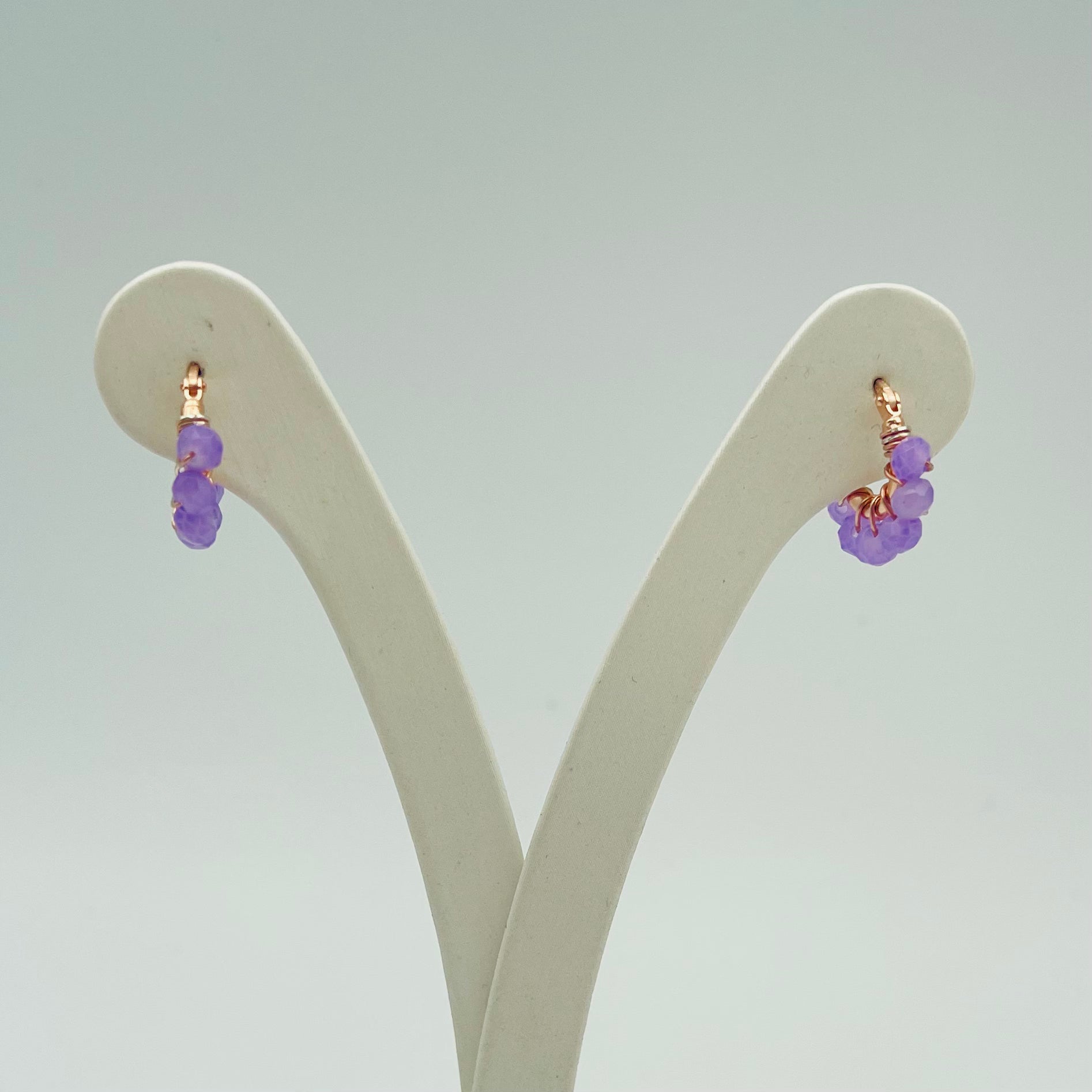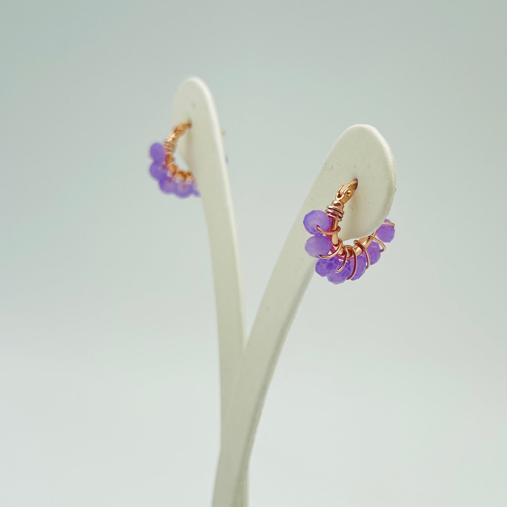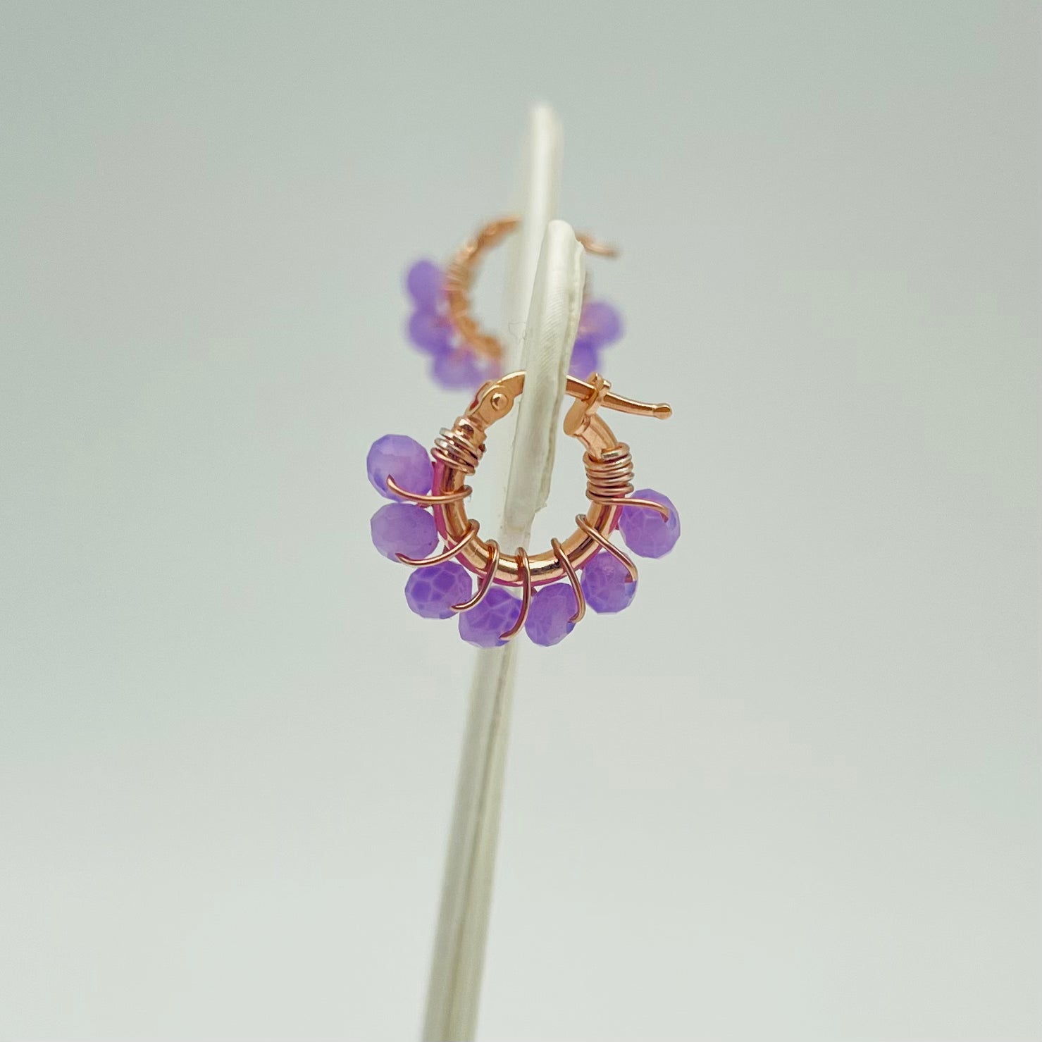 Orecchini a cerchio in argento colore rosè con perline colore lilla.