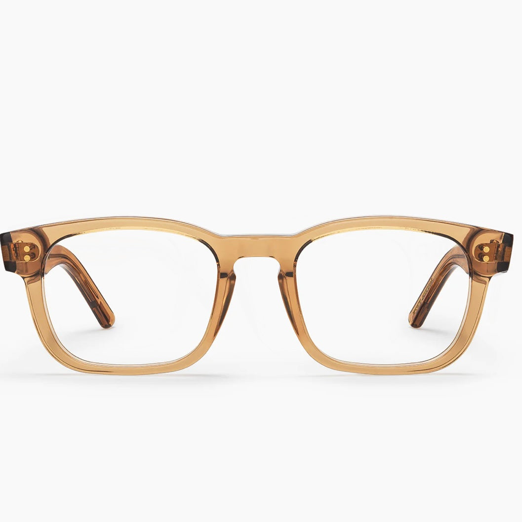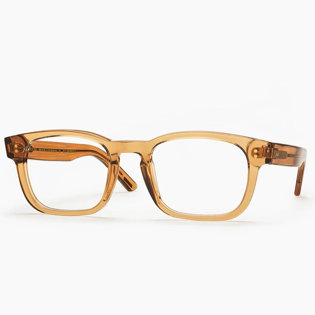 Montatura colore miele trasparente di design realizzata a mano, in acetato di alta qualità.