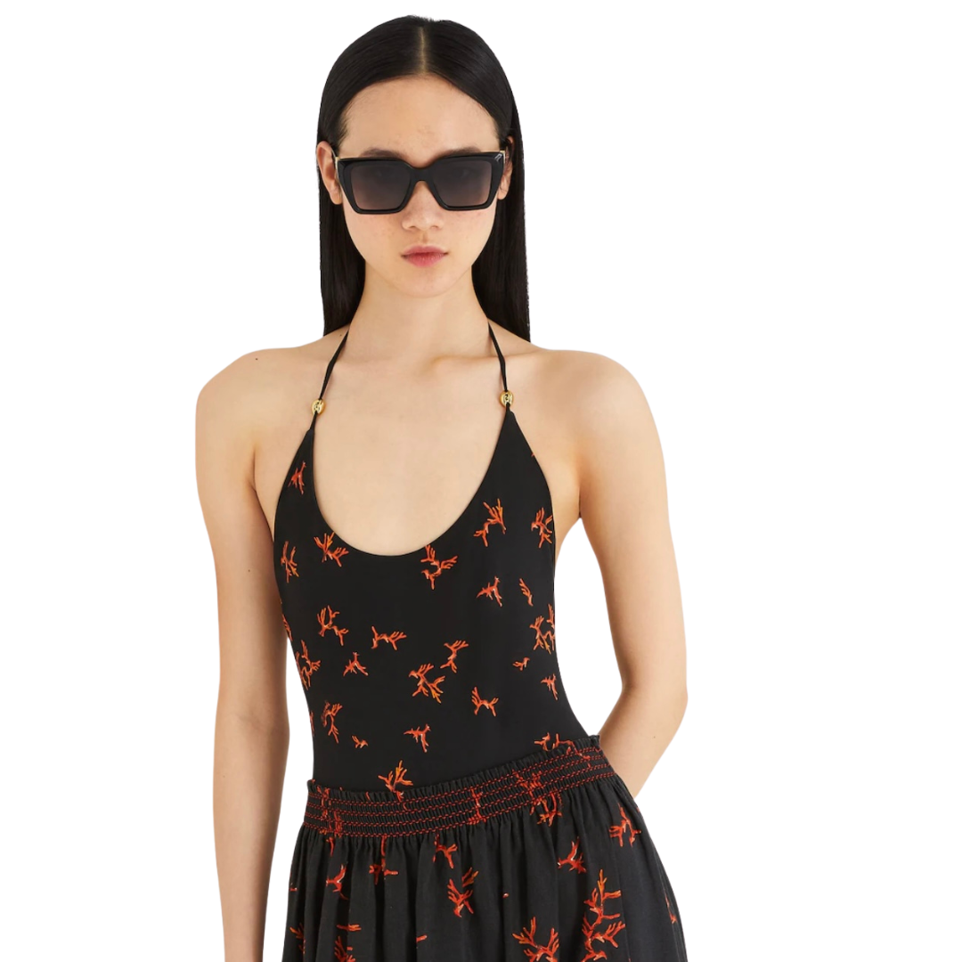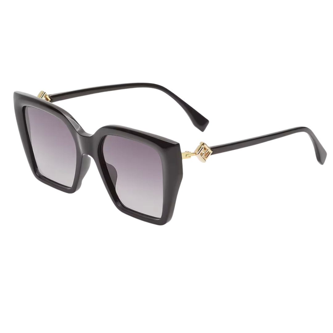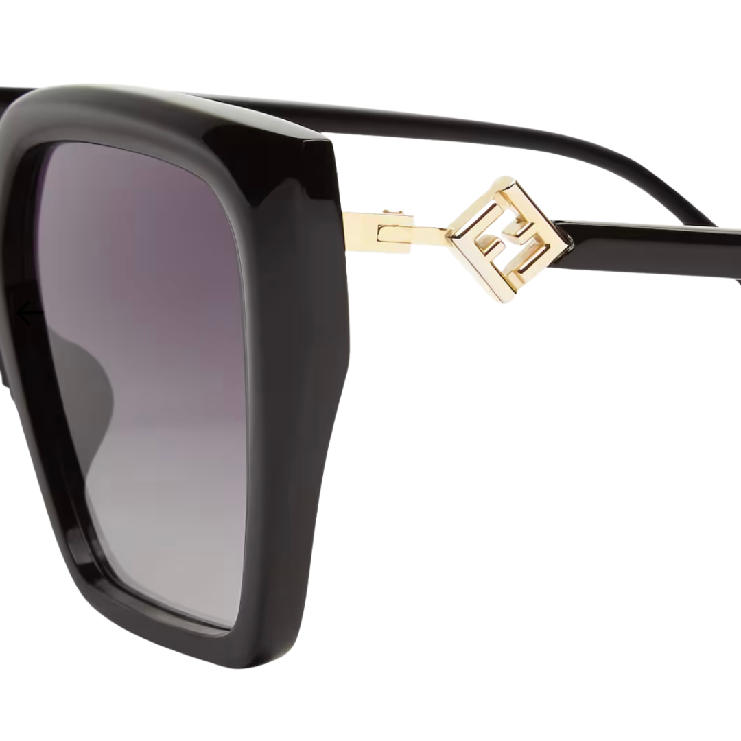 Occhiali FF Diamonds dalla forma squadrata oversize in acetato nero. Aste con cerniera FF Diamonds funzionale in metallo color oro.