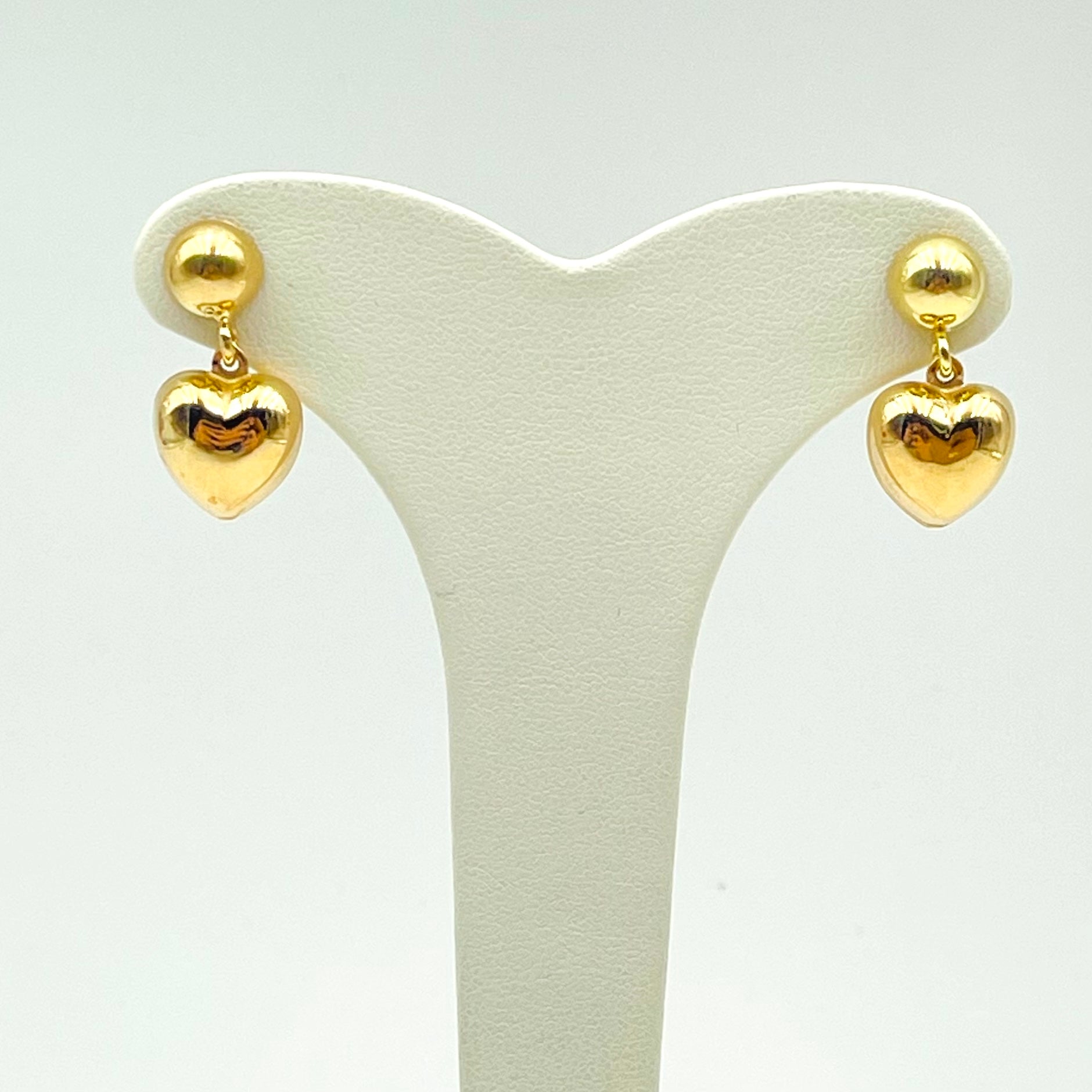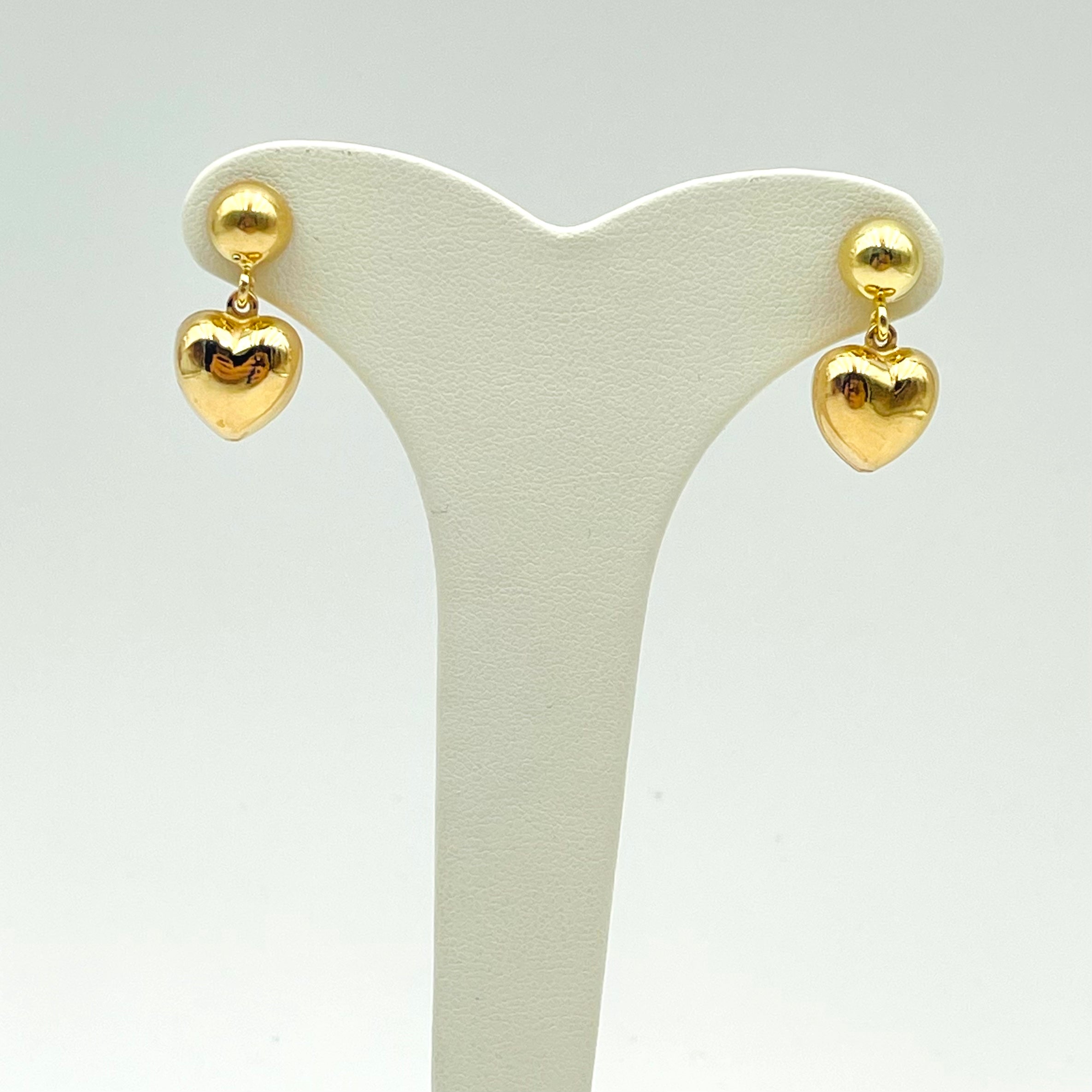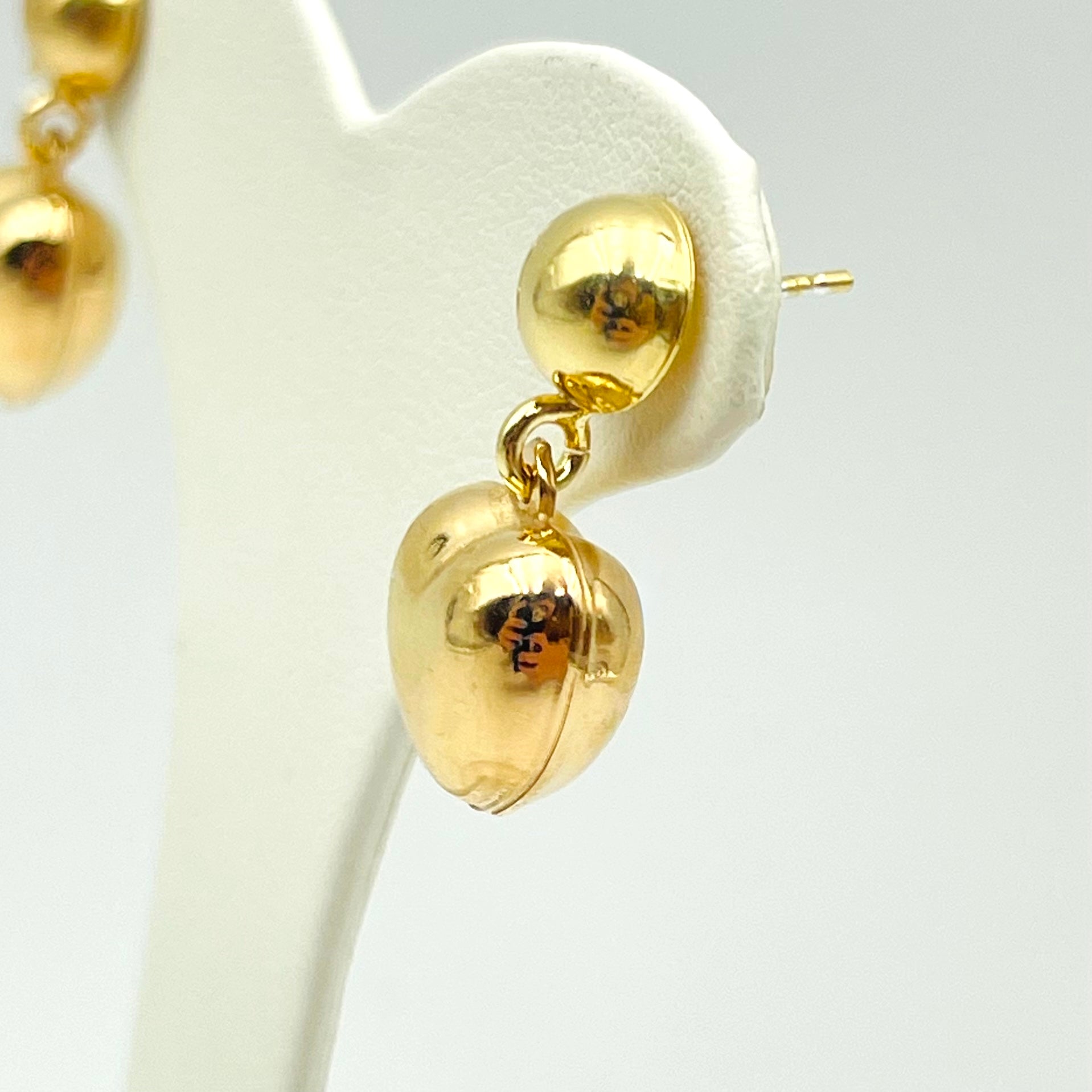 Orecchini a lobo in argento colore giallo con pendente a cuore.