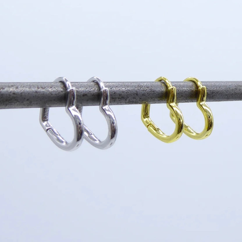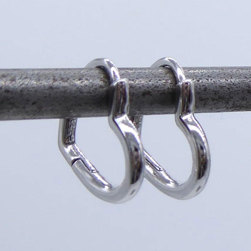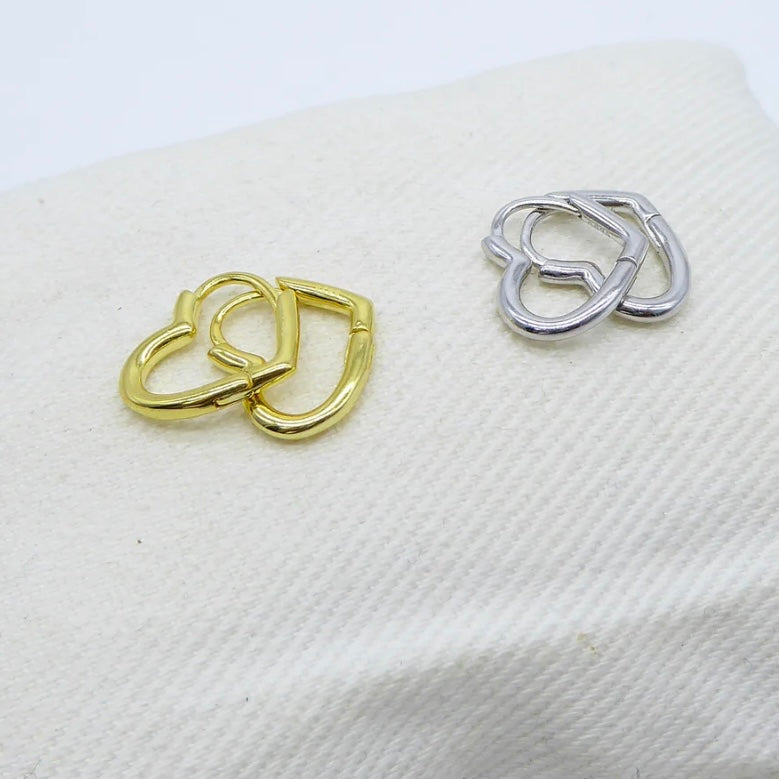 Orecchini a forma di cuore a filo in argento colore bianco, chiusura a scatto.